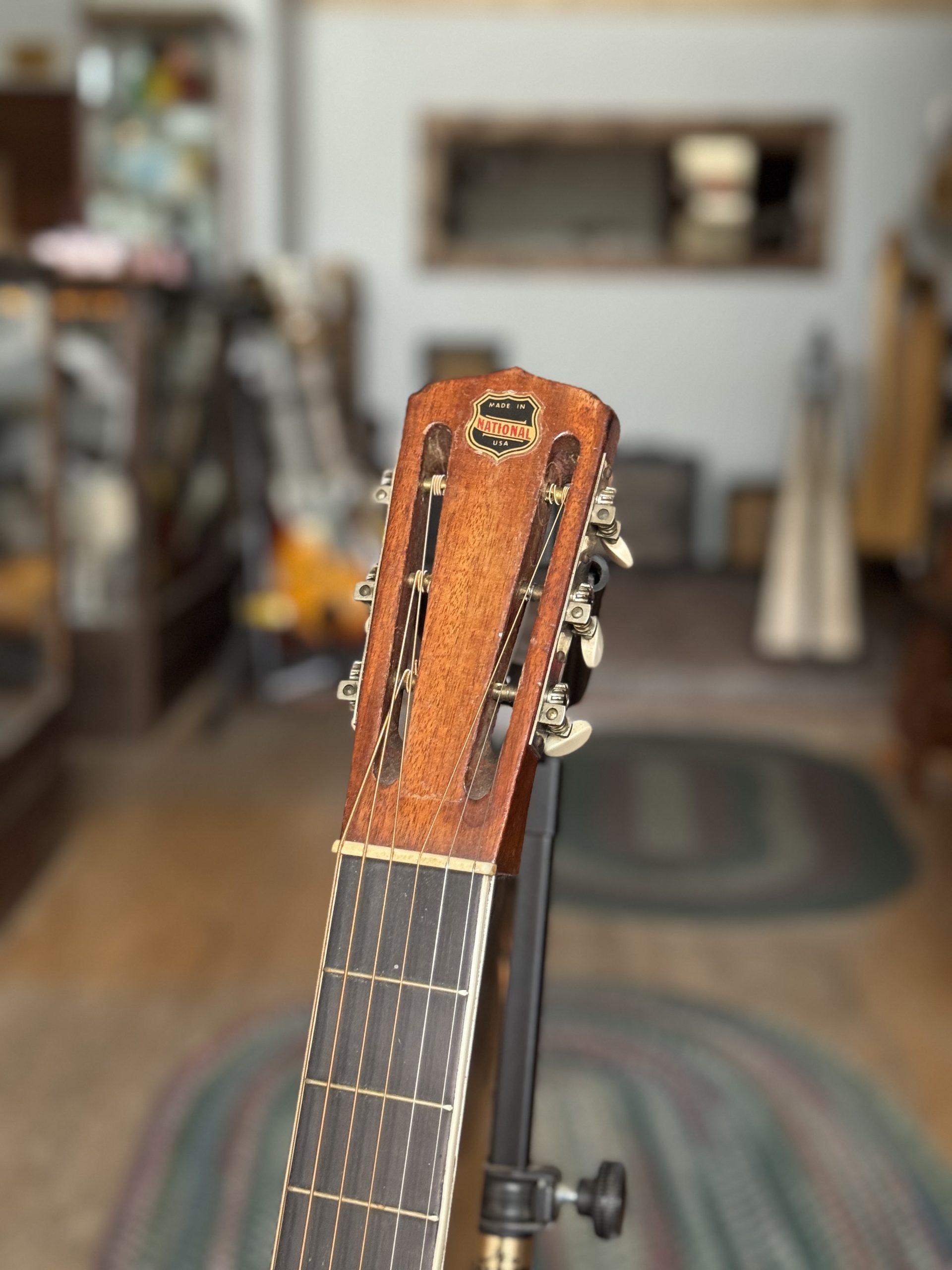This Squareneck Style 1 was built in 1930 and is in very good condition. The German silver body and cover plate has developed a light patina and the plating on the guard is lightly worn. There are several minor dents around the body and the headstock decal appears to have been replaced with a period appropriate decal. The guitar was re-coned several years ago. Its playability is fantastic and the tone is everything one can desire and expect of a golden era resonator instrument. With original hard shell case. $3650